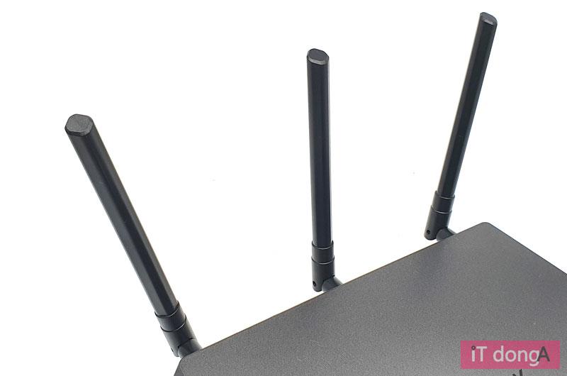 제품 후면에 달린 3개의 안테나가 달려있으며 2.4GHz 접속 시 최대 450Mbps, 5GHz 접속 시 최대 1300Mbps 모드로 접속이 가능한 합계 AC1750급의 무선 성능을 갖췄다. 1300Mbps(5GHz) 접속을 지원하는 단말기(노트북, 스마트폰 등)가 많지는 않지만 향후를 위해 이런 공유기를 하나 장만해 두는 것도 나쁘진 않다. 그리고 사용자의 방향으로 전파를 집중시켜 음영지역을 최소화하는 빔포밍+(Beamforming+) 기술을 지원하는 것도 장점 중 하나다.![]() |
