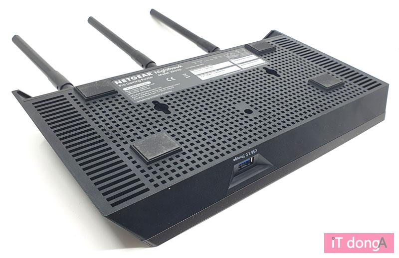 넷기어 나이트호크 XR300의 외형은 마치 우주선을 연상시키는 디자인의 검정색 외형을 갖췄는데, 이는 나이트호크 시리즈의 정체성이기도 하다. 상당수의 게이머들이 개성적인 디자인을 선호하기 때문이다. 제품 전면에는 전원 및 인터넷 연결, 2.4/5GHz/게스트 와이파이, USB 연결, 그리고 각 유선 포트 연결 등의 상태를 표시하는 12개의 LED가 달려 있으며 그 중 2개의 LED는 와이파이 ON/OFF 및 WPS(와이파이 간편연결) 버튼의 기능을 겸한다. LED가 너무 많아서 좀 부담스럽긴 하지만 그만큼 제품의 상태를 직관적으로 확인할 수 있는 건 장점이다.![]() |