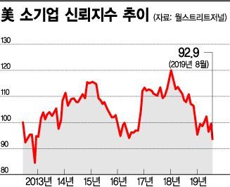 미 기업들의 우려도 짙어지고 있다. 월스트리트저널(WSJ)은 지난달 미국 내 연간 매출액 100만~2000만달러인 670개 기업들을 상대로 월례 조사를 한 결과 소기업신뢰지수가 92.9에 그친 것으로 집계됐다고 이날 보도했다. 2012년 11월 이래 가장 낮은 수준이었다. 소기업신뢰지수는 100을 기준으로 이보다 낮으면 경기가 악화될 것이라는 소규모 기업들이 많다는 의미다. 소기업신뢰지수는 지난해 1월 120.5와 비교하면 27.6포인트나 떨어졌다.