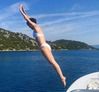 사진 속에서 그는 흰색 비키니를 입고서 입수 1초전 모습으로 포착돼 눈길을 끈다.