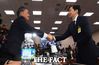 더불어민주당이 조국 법무부 장관 후보자를 둘러싼 각종 의혹을 적극적으로 방어하며 '원팀'을 강조했지만, 내부에서도 비판이 나오고 있다. 6일 국회 법사위에서 열린 인사청문회에 출석해 표창원 더불어민주당 의원(왼쪽)과 인사하는 조 후보자. /배정한 기자 |