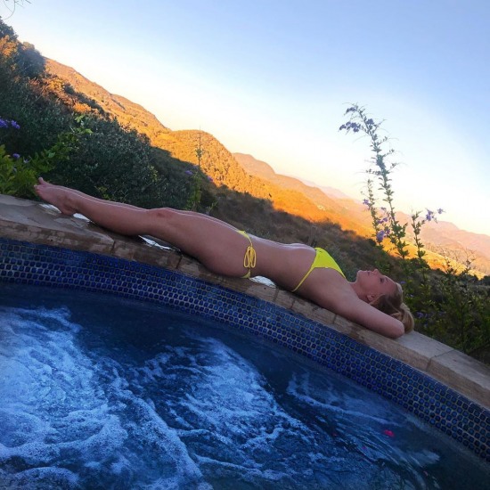 공개된 사진 속 브리트니 스피어스는 노란색 비키니를 입은 채 수영장 난간에 누워 포즈를 취하고 있다. 몸이 흡사 고무줄이라도 된 듯 다이어트로 완성한 날렵한 S라인 환상적이다.