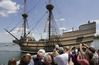 미국 메사추세츠주 플리마우스 항에 도착하는 '메이플라워 2호'. 청교도 미국 정착 400주년을 기념해 30개월 간 737만 달러(한화 약 88억원)를 들여 새단장을 마쳤다. [AP=연합뉴스] |