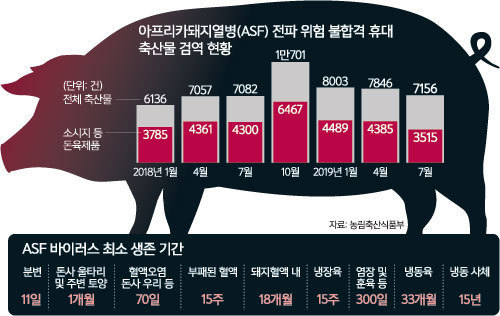 ASF는 사람에 전염되는 ‘인수공통전염병’이 아니다. 농식품부 관계자는 “ASF 등 가축 전염병에 걸린 가축은 전량 살처분 매몰처리하고 이상이 있는 축산물은 국내 유통되지 않아 국민들은 안심하고 돼지고기를 소비할 수 있다”며 “농장 및 관련시설에 대한 소독 등 철저한 방역조치를 이행하고 있으며 면밀한 임상관찰을 통해 의심 가축이 있으면 신속하게 신고해 달라”고 당부했다.