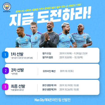 해외 프로구단 최초로 국내에서 활동하는 e스포츠팀을 뽑는 이번 선발전은 맨시티 선수들로 스쿼드를 구성해 3인 1팀 1대1 방식으로 경기를 진행한다.