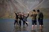 북한 학생들이 백두산 천지에 들어가 기념촬영을 하고 있다. [AFP=연합뉴스]