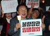 바른미래당은 21일 오후 서울 광화문 세종대왕상 앞에서 촛불집회를 열어 문재인 대통령의 조국 법무부 장관 임명을 철회할 것을 촉구했다.