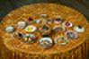 1. 열구자탕 (신선로) : 신선로에 육고기, 해산물, 채소 등을 색 맞춰 배열하여 함께 끓여 먹는 국물 음식 2. 골동면 (비빔국수) : 국수에 여러 가지 재료들과 함께 양념을 넣어 고루 비벼 먹는 음식 3. 수어증 (숭어찜) : 숭어 살과 소고기를 넣어 함께 끓여낸 찜 4. 편육 : 육고기를 덩어리째 삶아서 눌러두었다가 얇게 썬 음식 5. 전유어 (생선전) : 주로 흰살 생선을 얇게 썰어 밀가루를 입히고 달걀을 묻혀 기름에 지진 음식 6. 전복초 (전복조림) : 얇게 저민 전복을 양념한 간장에 조려서 만든 음식 7. 화양적 (누름적) : 각종 재료를 익히고 색을 맞추어 꼬챙이에 꿴 음식 8. 후병 : 꿀로 반죽한 찹쌀가루에 팥, 대추, 계핏가루 등을 넣어 쪄낸 떡 9. 약식 (약밥) : 찹쌀에 대추, 밤, 잣 등을 섞어 찐 다음 참기름, 꿀, 간장으로 버무려 만든 음식 10. 숙실과 : 과실을 익혀 다시 과실 모양으로 또는 여러가지 형태로 만든 음식 11. 포도: 생과일 포도, 생리 : 생과일 배, 생률 : 날밤이라고도 하며, 잔칫상에 껍질을 벗겨 납작하게 깎아 쌓아 올림, 12. 홍시 : 생과일 홍시 13. 정과: 과일이나 연근, 도라지, 생강 등을 꿀에 조리거나 재어 만든 음식 14. 원소병 : 찹쌀반죽으로 경단을 빚은 후 끓는 물에 익혀 꿀물 또는 설탕물에 담가 먹는 음료 15. 장침채 : 배추와 무를 간장으로 간을 하여 담근 국물 김치 16. 초장 : 간장에 초를 넣어 만든 양념 17. 개자 : 겨자에 소금, 초, 꿀을 넣어 만든 양념 18. 백청 : 빛깔이 희고 품질이 좋은 꿀 19. 전체 상차림 |