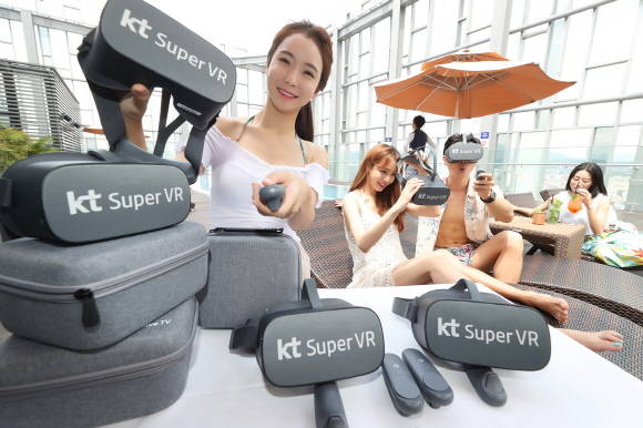 한편, KT는 슈퍼VR 출시와 함께 VR 월정액 요금제인 '슈퍼VR 패스(월 8800원, 부가세 포함)'를 내놓았다. 슈퍼VR 서비스를 이용하기 위해서는 단말이 필요하다. KT는 가격을 17% 할인하고, 슈퍼VR 패스 6개월 이용권을 묶어 45만원에 단말을 판매하고 있다고 설명했다.