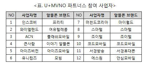 LG유플러스는 24일 중소 알뜰폰 성장을 위한 공동 브랜드·파트너십 프로그램 'U+MVNO 파트너스'를 공개했다. 대상은 LG유플러스 이동통신 망을 임대 중인 12개 알뜰폰이다.