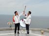 관음도 보행 전용 ㅇㅇ를 건너며 성화를 봉송한 김 군수 |