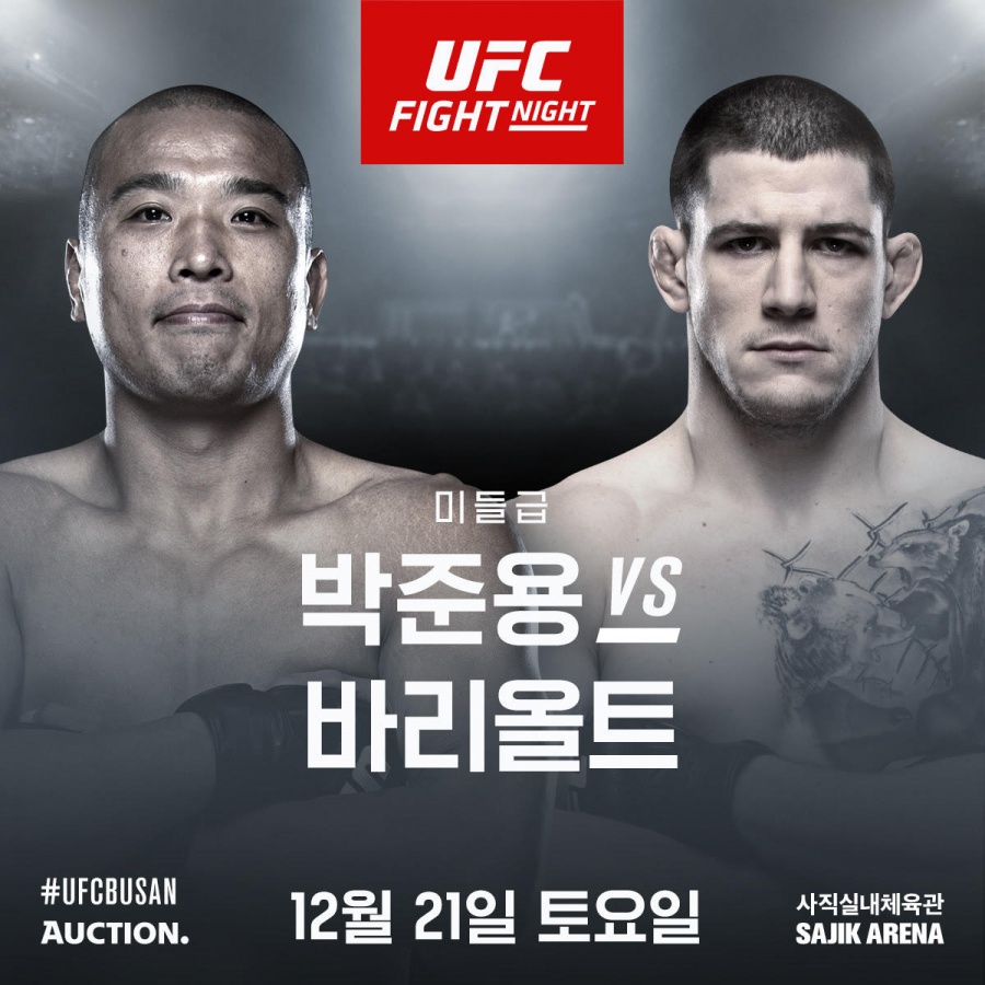 미들급 박준용(28, 코리안탑팀/㈜성안세이브)은 UFC 부산 대회에서 옥타곤 첫 승에 재도전한다. 상대는 마크-안드레 바리올트(29, 캐나다)다.