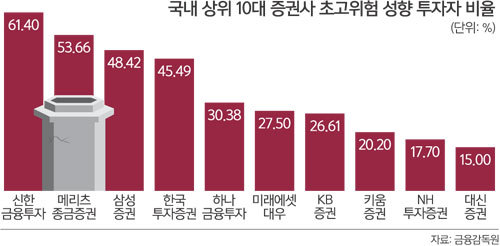 삼성증권(48.42%), 한국투자증권(45.49%), 하나금융투자(30.38%)도 초고위험 투자자 비율이 상대적으로 높았다.