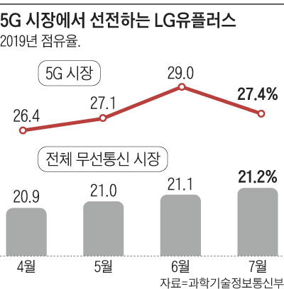 하 부회장은 작년 7월 LG유플러스 대표이사로 취임한 이후 세계 최초의 5G 상용화와 함께 점유율이 껑충 뛰는 성과를 맛봤다. 하 부회장은 "LTE 때 21%였던 시장 점유율이 5G 들어 한때 30%까지 올랐고 현재는 26% 수준"이라고 말했다. 점유율 목표를 묻자 그는 "본연의 서비스, 기술 경쟁력 확보에 집중하면 숫자는 알아서 따라온다"고 했다. LG는 4분기에 AR 기술을 접목한 홈트레이닝·쇼핑, 여러 관점에서 볼 수 있는 고화질 게임방송 등 '5G 서비스 2.0'을 내놓는다.