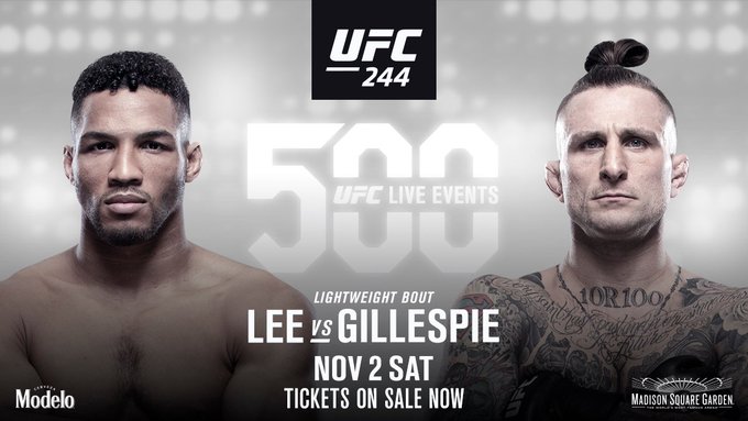 케빈 리가 라이트급으로 돌아온다. 오는 11월 3일 미국 뉴욕 매디슨스퀘어가든에서 열리는 UFC 244에서 그레거 길레스피와 맞붙는다. 리는 지난해 12월 알 아이아퀸타에게 판정패하고 웰터급으로 올라갔으나 지난 5월 하파엘 도스 안요스에게 암트라이앵글초크로 졌다. 길레스피는 UFC 6연승을 포함해 13연승 무패를 달리고 있다. (MMA 정키 보도)