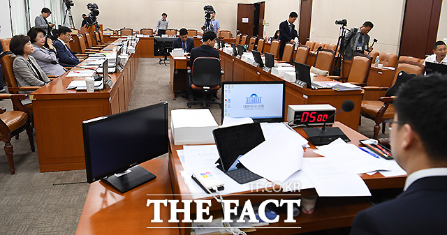 [더팩트ㅣ국회=이새롬 기자] 4일 오전 서울 여의도 국회에서 열린 보건복지위원회의 보건복지부, 질병관리본부에 대한 국정감사에서 자유한국당 소속 김승희 의원의 문재인 대통령 치매 초기 관련 언급과 관련해 여당 의원들의 항의로 국감이 정회됐다.