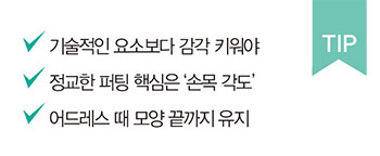 보통 오른손을 주로 사용할 때는 손목을 사용하는 경우가 많죠. 이런 분이라면 임성재의 말처럼 왼손이 리드하는 느낌을 갖고 오른손 손목은 각도를 유지하는 역할을 하는 방법을 사용해보세요. 퍼팅 스트로크 템포가 부드러워지고 볼을 어이없이 때리는 일이 줄어들 것입니다.