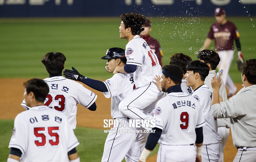 키움은 여기서 연이어 수비 실수를 범했다. 박건우의 빗맞은 땅볼 타구를 3루수 김웅빈이 볼 회전을 예상하지 못하고 타구를 놓치고 말았다. 그 사이 박건우가 홈까지 파고들었다. 스코어는 4-1이 됐다.