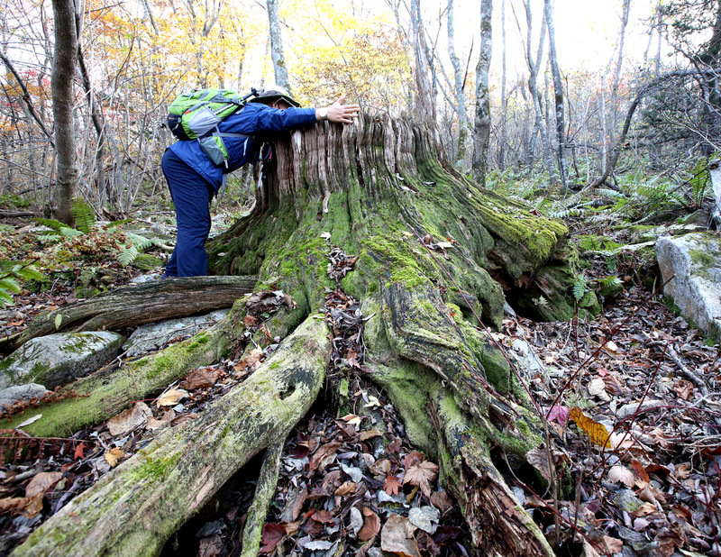 동네 마실가듯 걷기 시작했다. 오전 10시55분, ‘하이원탑’에서 바로 이어진 ‘고원숲길’로 들어섰다. 전날 내린 비로 들머리 신갈나무 낙엽은 반쯤 젖어 있었다. 폭 50㎝ 남짓한 길은 처음부터 끝까지 평탄했다. 워낙 완만해서 좁은 숲길에 ‘고원’(높은 지대에 있는 넓은 벌판)이란 이름을 붙였나 보다. 오솔길 산책하는 기분에 젖어 있는데 말라 죽은 나무줄기 한가운데서 키 2m 남짓 새로 자란 나무를 봤다. 이어 산짐승이 야생화 뿌리를 파먹은 흔적, 높은 산에서만 자란다는 홍갈색 주목과 은백색 사스래나무가 나타났다. 그제야 해발 1100m 넘는 산길 위에 있단 걸 실감했다. 화려하지 않은 옛 산길은 고산지대의 생명력을 잔뜩 뿜고 있었다.