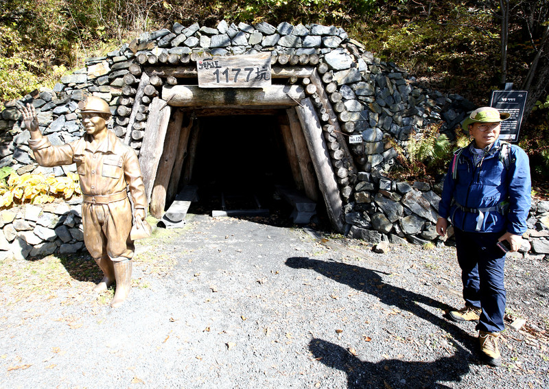 낮 12시15분, 손 흔들며 웃고 있는 광부 동상이 들머리를 지키고 있는 ‘1177갱’에 도착했다. 1960년대 무연탄을 채굴한 동원탄좌 사북광업소가 해발 1177m에 개발한 최초의 갱도다. 여기서 캐낸 석탄을 트럭에 실어 운탄고도를 따라 동쪽 함백역으로 보냈다. 동원탄좌는 1980년 24개 석탄광구에서 3400여명이 국내 석탄 생산량 9%를 담당한 국내 최대 민영 탄광업체였다. 여느 광부들처럼 사북광업소 노동자들 상황도 열악했다. 스티로폼으로 벽을 댄 사택은 천장이 허물어졌고 겨울엔 수돗물이, 휴일엔 전기가 끊긴 채 생활했다. 회사는 채탄량을 축소 계산해 임금을 낮췄다. 1980년 4월 사북항쟁의 발단이었다.