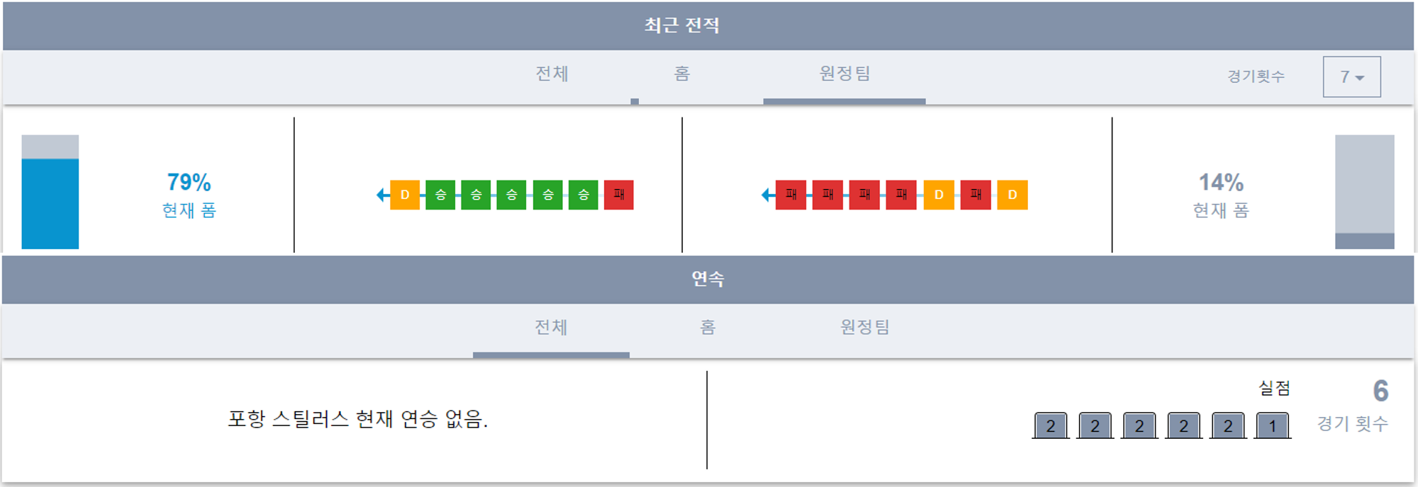 포항의 강점은 역시 근거 있는 '홈 자신감'이다. 스포츠 적중게임 문화를 선도하는 '스포라이브(SPOLIVE)'에 따르면, 포항은 최근 홈에서 25라운드 전북전 패배 이후, 6경기에서 5승 1무를 거두며 만족스러운 성적을 내고 있다. 이 기세를 이어 포항은 올 시즌 마지막 홈경기 승리로 유종의 미를 거두고자 한다.