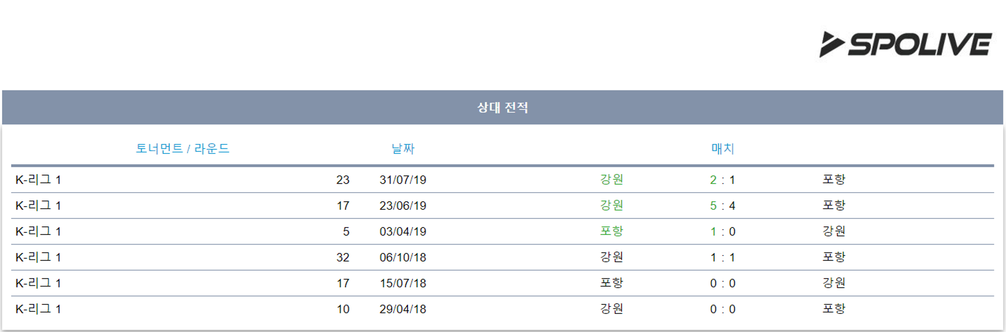 강원은 올 시즌 포항과의 '상대 전적 우위'를 앞세운다. '스포라이브(SPOLIVE)' 데이터에 따르면, 올 시즌 강원은 포항과 3번의 맞대결에서 2승 1패로 앞서있다. 특히, 지난 17라운드에서는 포항에 4골을 선제 실점한 이후 5골을 몰아넣으며 5-4로 극적 승리한 경험이 있다. 그러나 강원은 수비 집중력이 문제점으로 꼽힌다. 최근 6경기 연속 실점을 허용하며 안정적인 경기 운영에 차질을 빚고 있다.