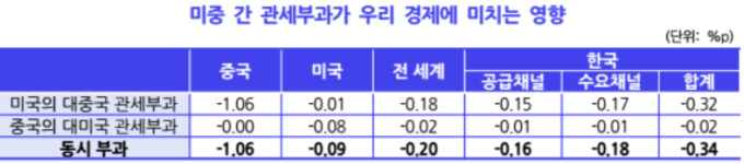 KDI는 미중 간 상호 관세부과가 계속될 경우 중국 내 기업 실적이 일차적으로 악화되고 이어 가계 및 은행 건전성에도 악영향을 미칠 것으로 봤다. 이러한 중국의 수출 감소(공급채널)와 내수 감소(수요채널)의 영향이 종국에는 한국 경제 성장률에도 영향을 미칠 수 있다는 분석이다.
