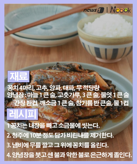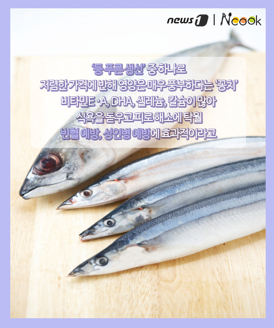 (서울=뉴스1) 김수경 에디터 = ‘등 푸른 생선’ 중 하나로 저렴한 가격에 반해 영양은 매우 풍부하다는 ‘꽁치’. 비타민E·A, DHA, 셀레늄, 칼슘이 많아 식욕을 돋우고 피로 해소에 탁월하고 빈혈 예방, 성인병 예방에 효과적이라고 한다. 제철 맞이해 맛도 좋고 몸에도 좋은 꽁치로 맛있는 계절밥상은 어떨까.