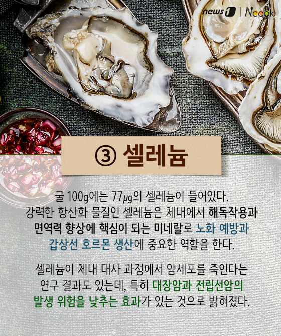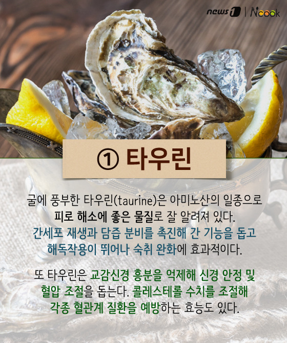 (서울=뉴스1) 박라경 에디터 = 제철을 맞아 통통하게 살이 오른 굴이 미식가들의 입맛을 돋우고 있다. '바다의 우유'로 불리는 굴은 어패류 중에서도 영양성분을 가장 풍부하게 함유하고 있어 동서양을 막론하고 훌륭한 영양 식품으로 꼽힌다. 물론 맛도 그만이지만 오늘따라 피곤함을 느낀다면 굴을 당장 먹어야 하는 이유가 있다.