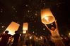 태국 러이 끄라통 축제 때 시민들과 관광객들이 등불을 하늘에 띄워올리고 있다. /AP뉴시스
