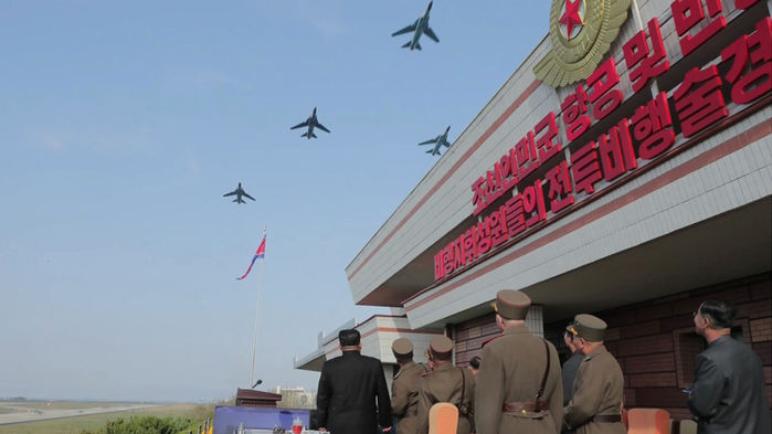 이어 "모든 비행사들이 주체적인 항공 전법을 깊이 체득하고 작전과 전투에 능숙히 구현할 수 있게 철저히 준비하여야 한다"며 "비행 훈련을 정상화, 체계화, 실전화하고 극악한 조건에서 강도 높게 진행하여 모든 비행사들이 높은 비행술과 폭격술, 사격술을 소유하도록 하는 것이 중요하다"고 강조했습니다.
