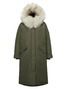 풍성한 라쿤 털이 달린 야상 스타일의 다운 재킷. RDS 구스 다운을 충전재로 사용하고, 소매단 안쪽에 니트 밴드를 넣어 보온성을 높였다. 코오롱스포츠. 가격 69만원