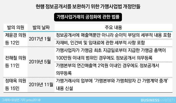 20대 국회에 정보공개서 강화한 가맹사업법 3개 발의