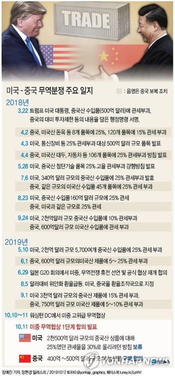 (서울=연합뉴스) 장재은 기자 = 단계적 무역합의를 추진하고 있는 미국과 중국의 정상이 상대 무역협상 기조를 정면으로 부정하는 강수를 두고 나섰다.