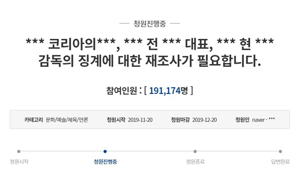 20일 청와대 국민청원 게시판에는 '카나비 사건을 재조사 해달라'는 내용의 청원이 올라왔다. 작성자는 조 전 대표에 대해서는 사법기관의 조사를 요구했으나 김 전 감독에게는 라이엇 코리아 자체 조사를 시행해 징계를 발표했다면서 재조사가 필요하다고 주장했다. 26일 오후 2시 기준으로 19 만여 명이 청원에 동참하는 등 열기가 뜨겁다.