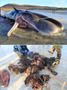 지난달 30일 스코틀랜드 헤브리디스제도의 해안에 밀려온 죽은 향유고래(위 사진)와 향유고래 위에서 나온 쓰레기.[SMASS 페이스북 계정] |