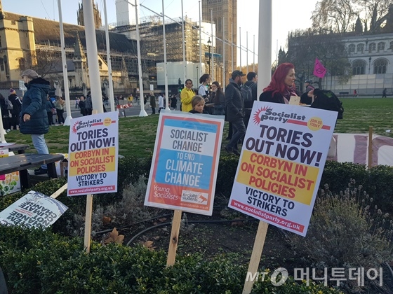 이날 런던에서의 시위가 타지역과 다른 점이 있었다면 12일 있을 영국 총선을 정조준했단 점이다.