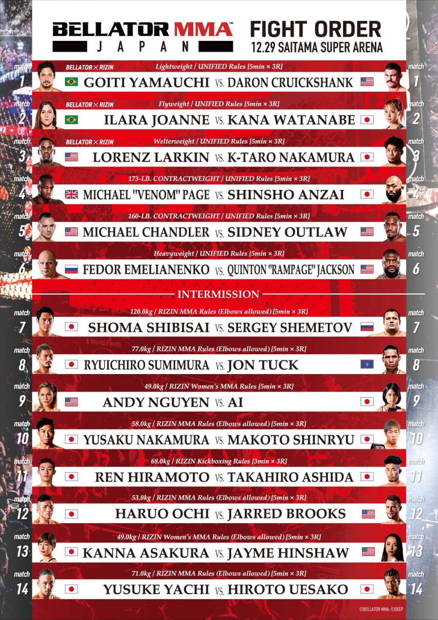 벨라토르는 일본에서 처음 여는 이번 대회에 프라이드 간판 파이터들을 전면에 내세워 일본팬들에게 어필하는 중이다. 본격적인 아시아 진출의 신호탄을 쐈다.