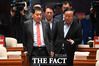 더불어민주당 내부에서 자유한국당의 비례 위성정당 창당 선언에 대한 우려의 목소리가 나오고 있지만, 맞불 위성정당 창당은 검토하고 있지 않다는 입장이다. 지난 23일 한국당 의원총회에 참석한 심재철 원내대표와 김재원 정책위의장. /국회=남윤호 기자