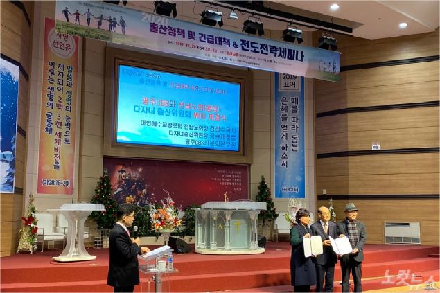 특히 이날 세미나에서는 광주CBS 최문희 본부장과 대한예수교장로회 전남노회장 김철수 목사, 다자녀출산위원장인 정종채 장로(㈜금석 대표이사)가 '광주CBS와 전남노회(통합) 다자녀출산위원회 MOU 체결식'을 가져 행사의 의미를 더했다.