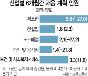 올해 10월~내년 3월 채용(국내 5인 이상 사업체) 계획 규모가 전년 동기보다 약 4만명 감소한 것으로 조사됐다. 대규모 재정투입에도 경기부진 탓에 기업들의 채용계획 인원이 10년 만에 최저치로 내려앉은 것이다. 올해 3·4분기 구인·채용 인원도 각각 70만명과 60만명선이 무너지면서 고용한파가 지속됐다.