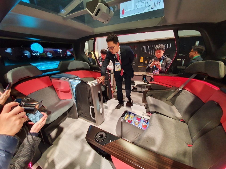 대형 올레드 패널을 독점 생산중인 엘지디스플레이는 ‘벤더블(구부릴 수 있는) 티브이’와 ‘폴더블(접을 수 있는) 노트북’ 등 새로운 제품들을 선보였다. 벤더블 티브이는 비행기 좌석에 시연용으로 마련됐는데 리모콘을 누르면 화면이 굽혀져 탑승객의 화면 몰입감을 높인다. 엘지 관계자는 “화면을 말 수 있으면 굽히거나 접는 건 당연히 가능하다”고 설명했다. 폴더블 노트북은 삼성전자가 먼저 내놓은 폴더블 스마트폰의 확대 버전으로 보였다. 이들 제품은 연내 출시가 계획돼 있다.