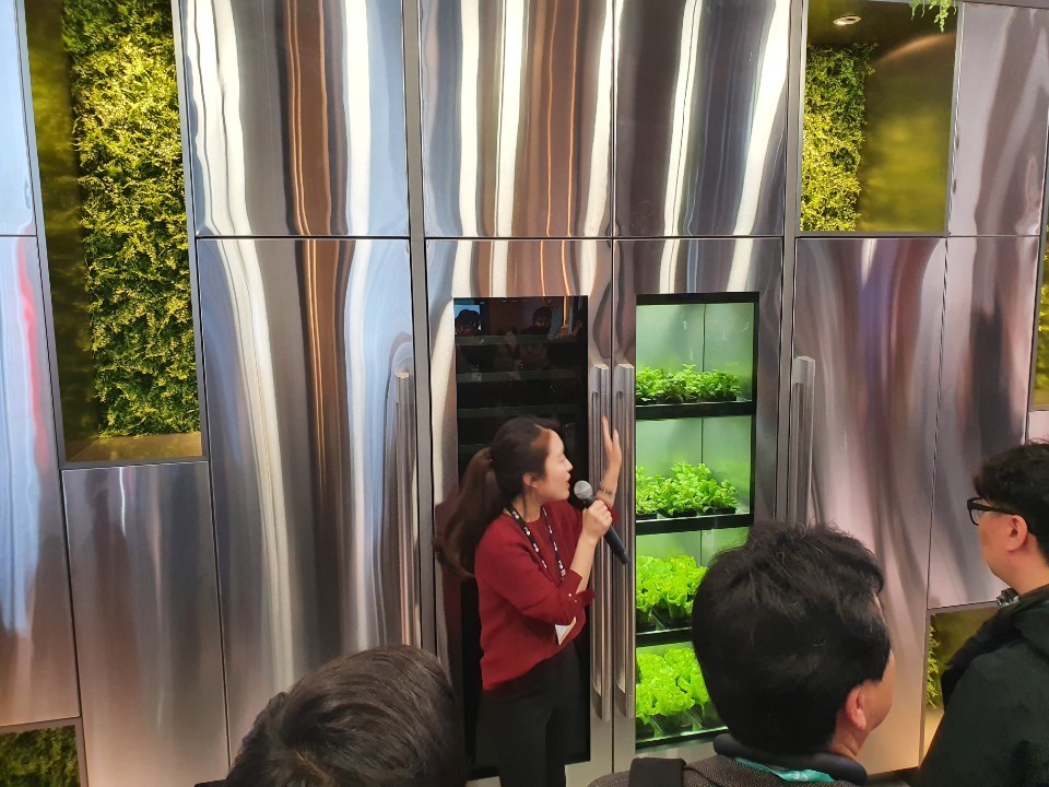 식물재배기도 눈길을 끌었다. 복잡한 채소 재배 과정을 모두 자동화한 게 특징이다. 고객이 식물재배기 안의 선반에 씨앗 패키지를 넣고 문을 닫으면 채소 재배가 자동으로 시작된다. 씨앗 패키지에는 씨앗과 흙, 비료 등이 한 번에 담겨있는데 상추와 케일 등 20가지가 가능하다.