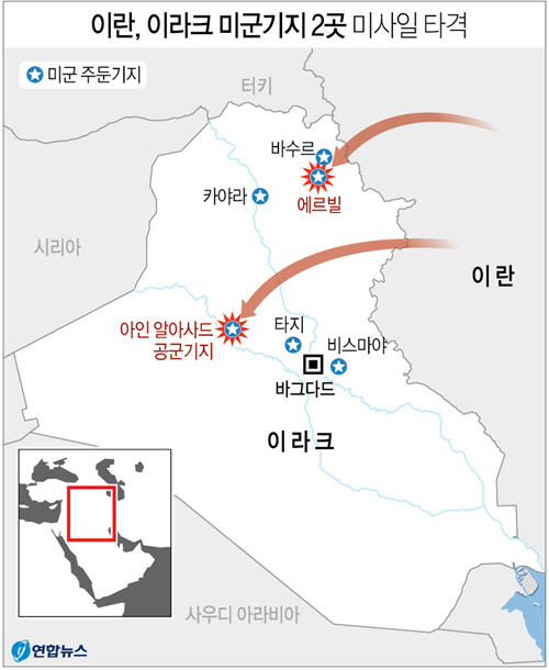 8일 새벽(현지시간) 이란의 공격을 받은 이라크 서부 안바르의 아인 알아사드 공군기지는 이라크에 있는 미군 기지 중 2번째로 큰 곳이다. 미 해병대와 82공중강습사단, 의료부대와 지원부대, 영국군 등이 주둔하고 있다. 2018년 12월 도널드 트럼프 미국 대통령과 부인 멜라니아가 방문했던 곳이고, 지난해 11월에는 마이크 펜스 부통령도 추수감사절을 앞두고 미군 위로차 방문한 기지다.