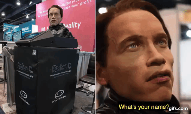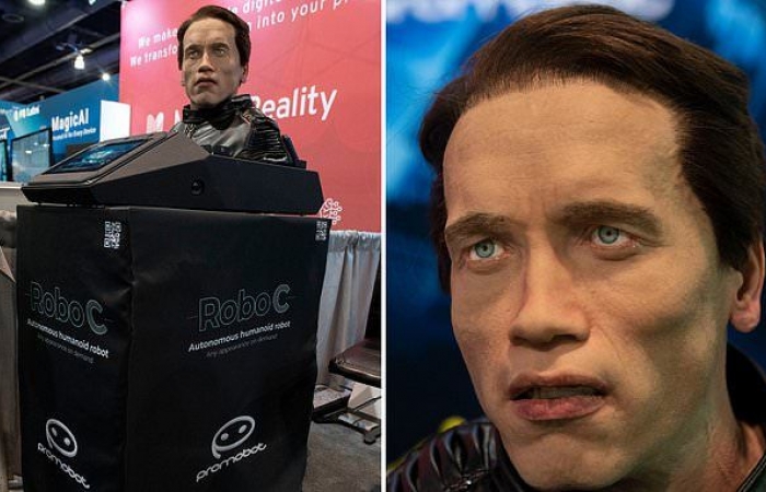 이번 전시회에는 고전 공상과학(SF) 영화 ‘터미네이터’ 시리즈의 주인공으로 세계적인 할리우드 배우 아널드 슈워제네거와 비슷하게 생긴 인간형 로봇 ‘로보-C’가 공개돼 관람객들의 눈길을 사로잡았다.