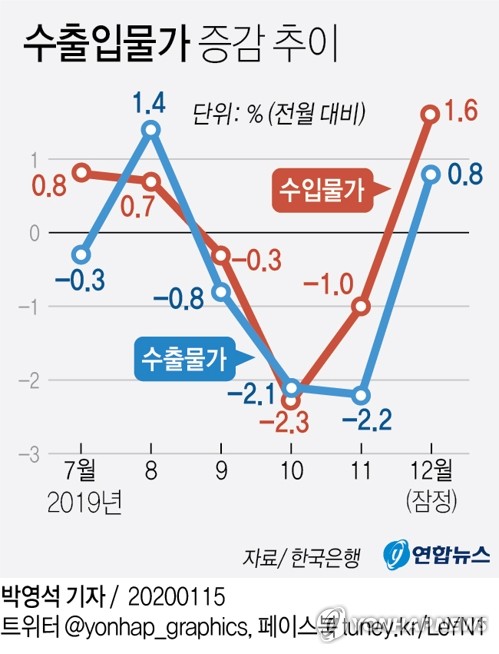 2019년 연간 수입물가는 전년 대비 0.8% 상승한 것으로 집계됐다.