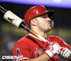 [OSEN=로스앤젤레스(미 캘리포니아주), 지형준 기자]6회초 에인절스 트라웃이 대기타석에서 숨을 고르고 있다. /jpnews@osen.co.kr