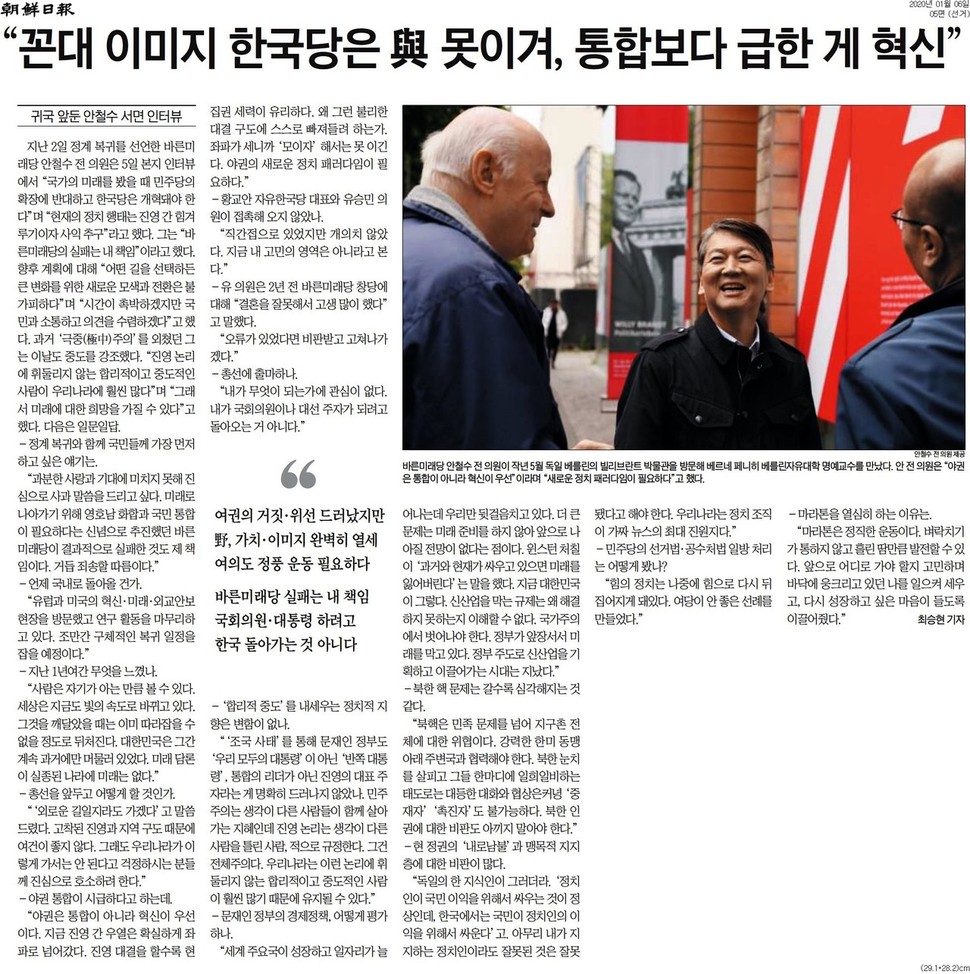 둘째, <조선일보> 1월 6일 치에 실린 서면 인터뷰입니다. 이런 내용이 눈에 띕니다.