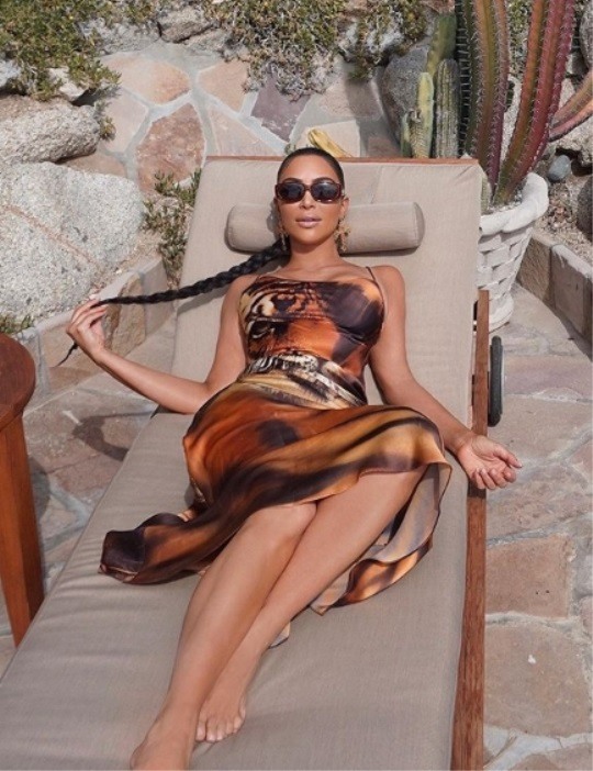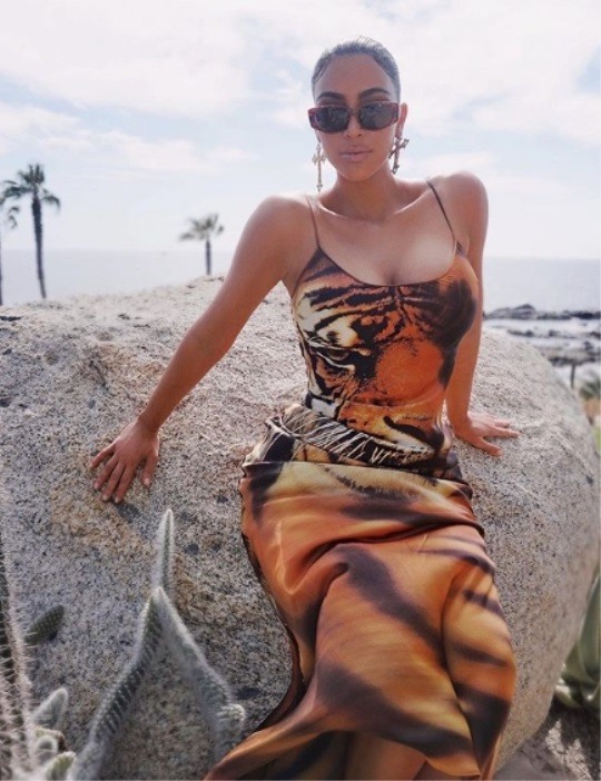공개된 사진 속 킴 카다시안은 호랑이 무늬의 원피스를 입고 글래머러스한 몸매를 뽐내고 있다. 몸매 종결자답게 치명적인 섹시함이 화면을 꽉 채운다.