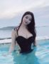 사진에는 블랙 색상의 수영복을 입은 김나정이 바다를 배경으로 수영장에서 카메라를 응시하고 있다.